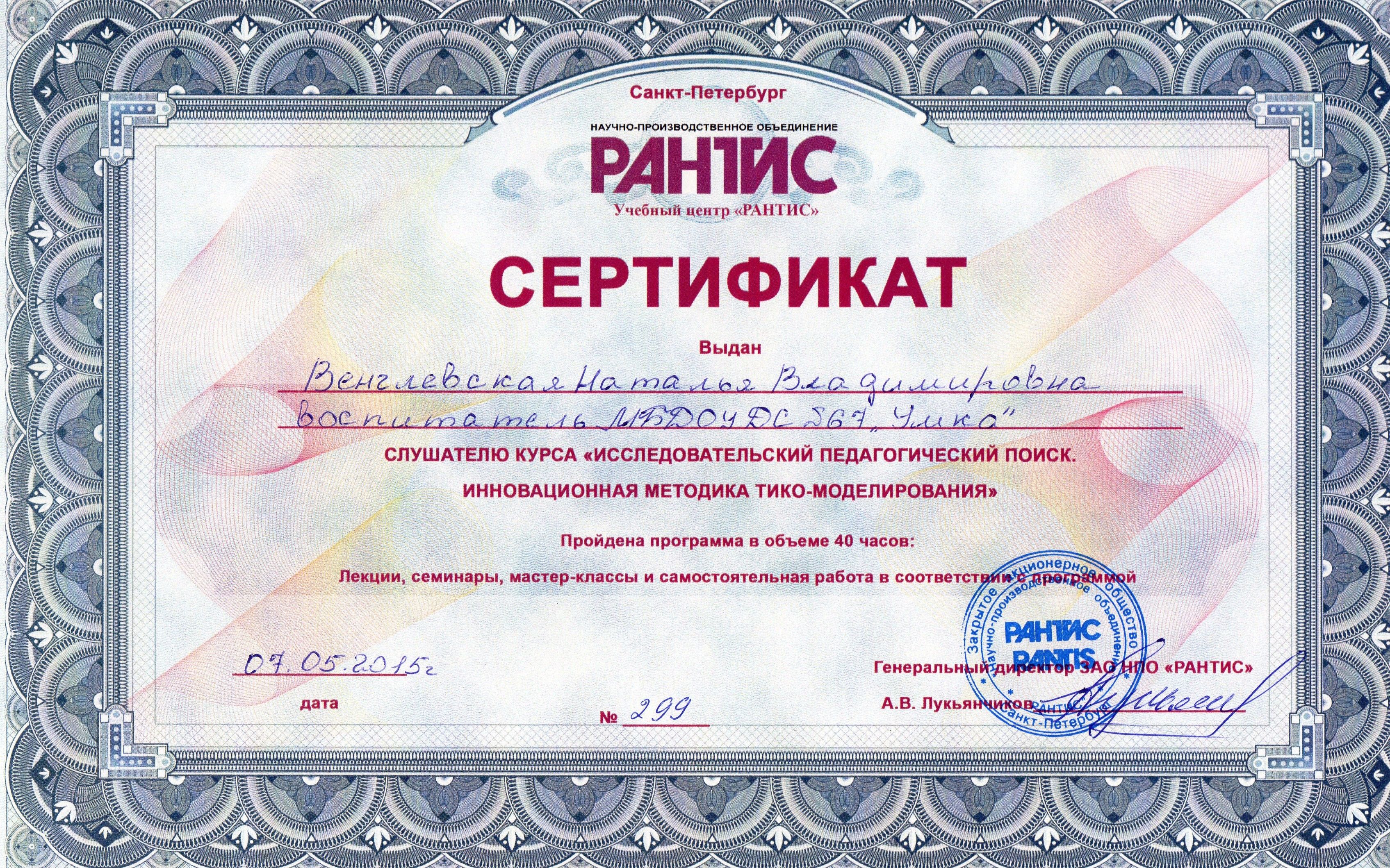 Сертификаты, сведетельства